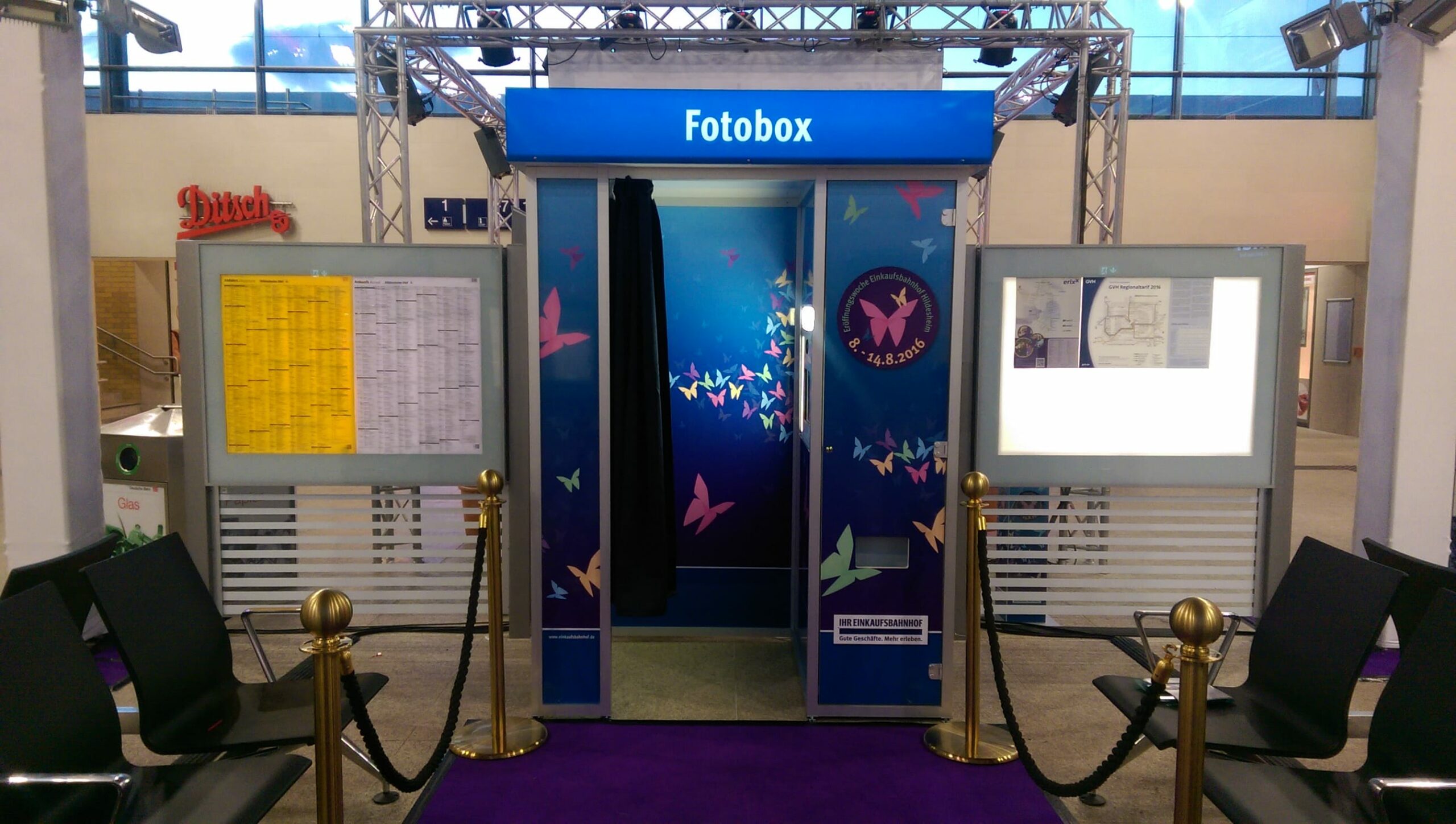 Die Box ist hat die Maße 0x0x0 LxBxH und ist begehbar. Ein Vorhang schirmt die Außenwelt für die Fotosession ab und bietet Privatsphäre während des Fotografierens. Hier kann sich jeder austoben und die Bilder gleich mitnehmen.